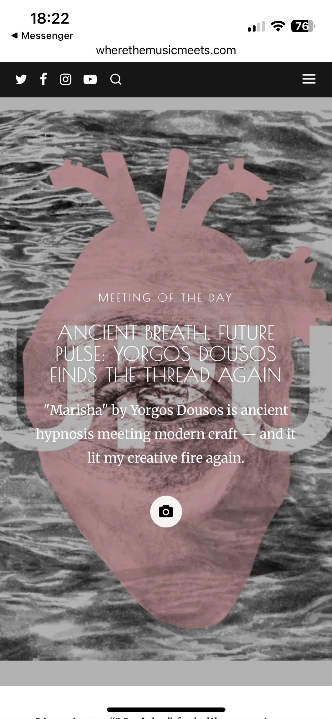 "Marisha" by Yorgos Dousos is ancient hypnosis meeting modern craft — and it lit my creative fire again.